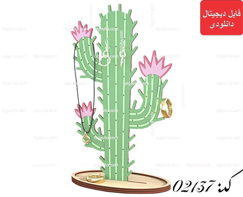 طرح استند جواهرات مدل کاکتوس | فایل برش لیزری